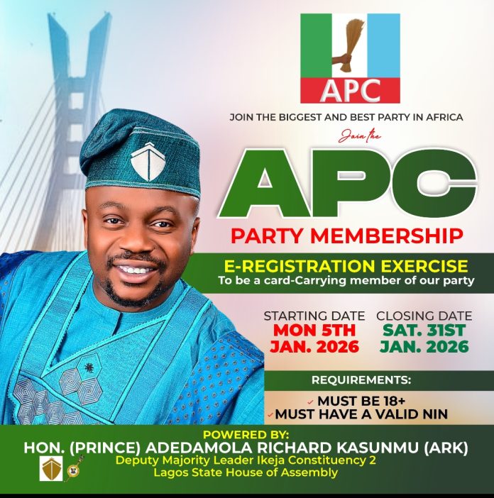 In fulfillment of his promise to support the ongoing APC membership e-Registration exercise, the Deputy Majority Leader of the Lagos State House of Assembly, Hon. Adedamola Richard Kasunmu (ARK), on Saturday 17th January 2026, donated multimillion-naira digital devices to three designated registration centres across Ikeja Constituency 2.The benefiting centres are:*(1) Ikeja (Old) Ward E; Location: Hon. ARK Constituency Office, No. 40 Seriki Aro Street, Ikeja**(2) Ikeja (Old) Ward A; Location: Ola Ayeni Street (in front of Fidelity Bank), Computer Village, Ikeja.**(3) Ojodu (Old) Ward B; Location: Old Ojodu Market, opposite Goshen Plaza, Berger Bus Stop, Ojodu.*Materials Donated to Each Centre are as Follows:*🔶Ikeja (Old) Ward E –* Seriki Aro Centre:*Two (2) multipurpose 5G tablets*One (1) smart printer*One (1) 5G internet router with 100GB data*One (1) power extension socket*Two (2) packets of A4 paper. *🔶Ikeja (Old) Ward A –* Computer Village Centre;*One (1) multipurpose 5G tablet*One (1) smart printer*One (1) 5G internet router with 100GB data*One (1) power extension socket*Two (2) packets of A4 paper*Ojodu (Old) Ward B – Berger Centre*Two (2) multipurpose 5G tablets*One (1) smart printer*One (1) 5G internet router with 100GB data*One (1) power extension socket*Two (2) packets of A4 paper. The first point of delivery was Ojodu, where two councilors, *Hon. Abass Bismillahi and Hon. Bukky Ademoyegun, Ward F Chairman Mr. Lawal, and Elder Nicholas Ibok* received the materials on behalf of the party. The items were formally presented by Hon. ARK’s Chief of Staff/PA, Yinka Dada, alongside the Senior Special Assistant on Media and Constituency Engagement, Sola Folowosele.At the Computer Village centre, the Ward Vice Chairman, Mr. Adesanya Adelaja, and an EXCO member, Mrs. Monsurat Kelani, took delivery of the materials, while Mr. Seun Makinde, Alhaja Kudirat Adebayo, received the items in the presence of renowned Leaders such as *Engineer Abiodun Taiwo and Hon. Adebowale Adetoro (Kimito)* at the Seriki Aro centre.Competent and well-trained party agents have been deployed to man the three centres to ensure a smooth and efficient registration process.Reacting to the development, Hon. Kasunmu stated:“During my meeting with our party EXCOs last weekend, I promised to support the ongoing membership e-Registration project with digital devices and other materials. This donation, coming within seven days, is a major fulfillment of that promise. I commend our party leadership across Ikeja and Ojodu for the impressive mobilization so far. I specially appreciate our enigmatic leader and Member of the House of Representatives, Hon. James Faleke, our leader and father, Baba Eto, Cardinal James Odunmbaku; our party chairmen in Ikeja and Ojodu, Alhaji Adekunle Dally-Adeokun and Alhaja Stella Olusola Kokumo, as well as our two Council Chairmen in Ikeja and Ojodu All hands must be on deck to ensure massive turn out in Ikeja as we work for our father, Asiwaju Bola Ahmed Tinubu, ahead of 2027. This is part of my contribution to the Asiwaju 2027 project, and more interventions are still coming.”In their responses, party leaders across the wards expressed deep appreciation to Hon. Kasunmu, describing his intervention as heart-warming, timely, and exceptional.It will be recalled that the vibrant and ranking legislator recently convened a historic grassroots summit in Ikeja Constituency II, where over 300 APC EXCO members were hosted and supported with cash gifts, each receiving a minimum of ₦20,000, alongside other forms of juicy packages. Membership e-Registration has since commenced seamlessly at the three centres established by Hon. ARK.©️ ✍️ & 📸 Sola FolowoseleSSA to the DML on Media & Constituency Engagement. 17th January, 2026